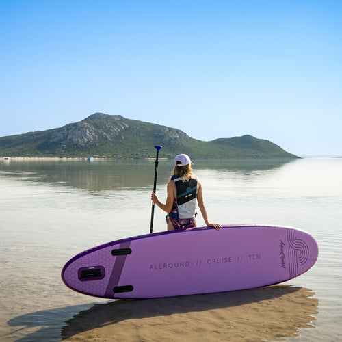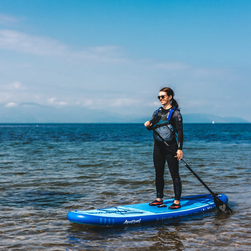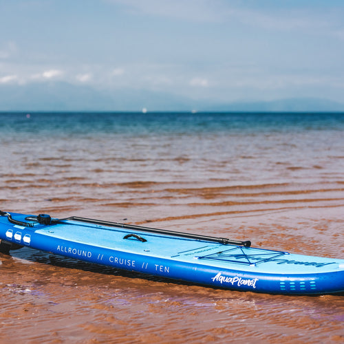 The Aquaplanet Allround Ten 10' Inflatable Paddle Board is perfect for all skill levels, offering stability, maneuverability, and durability on lakes, rivers, and coastal waters.